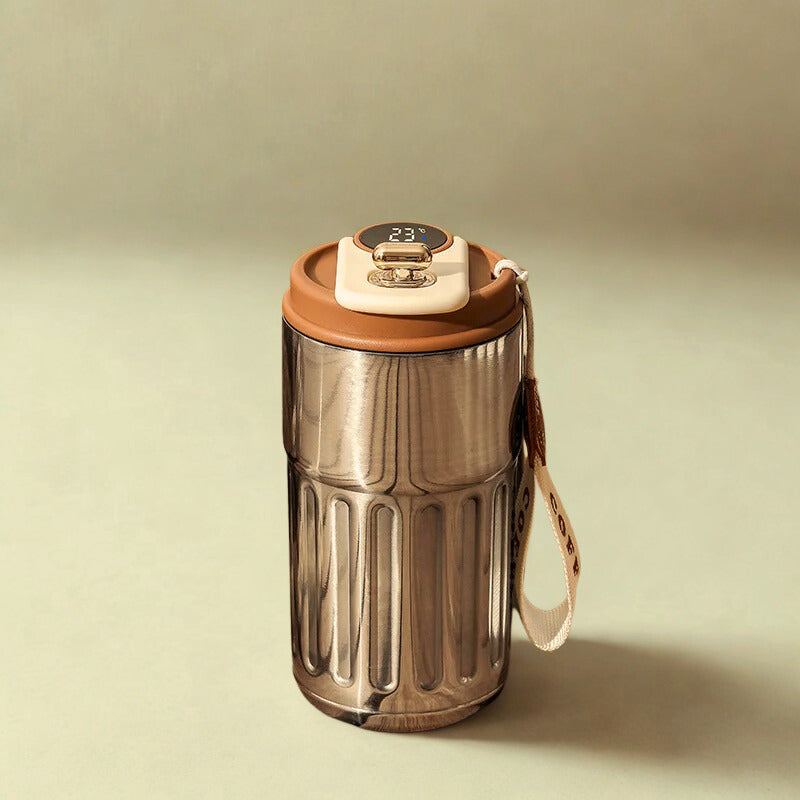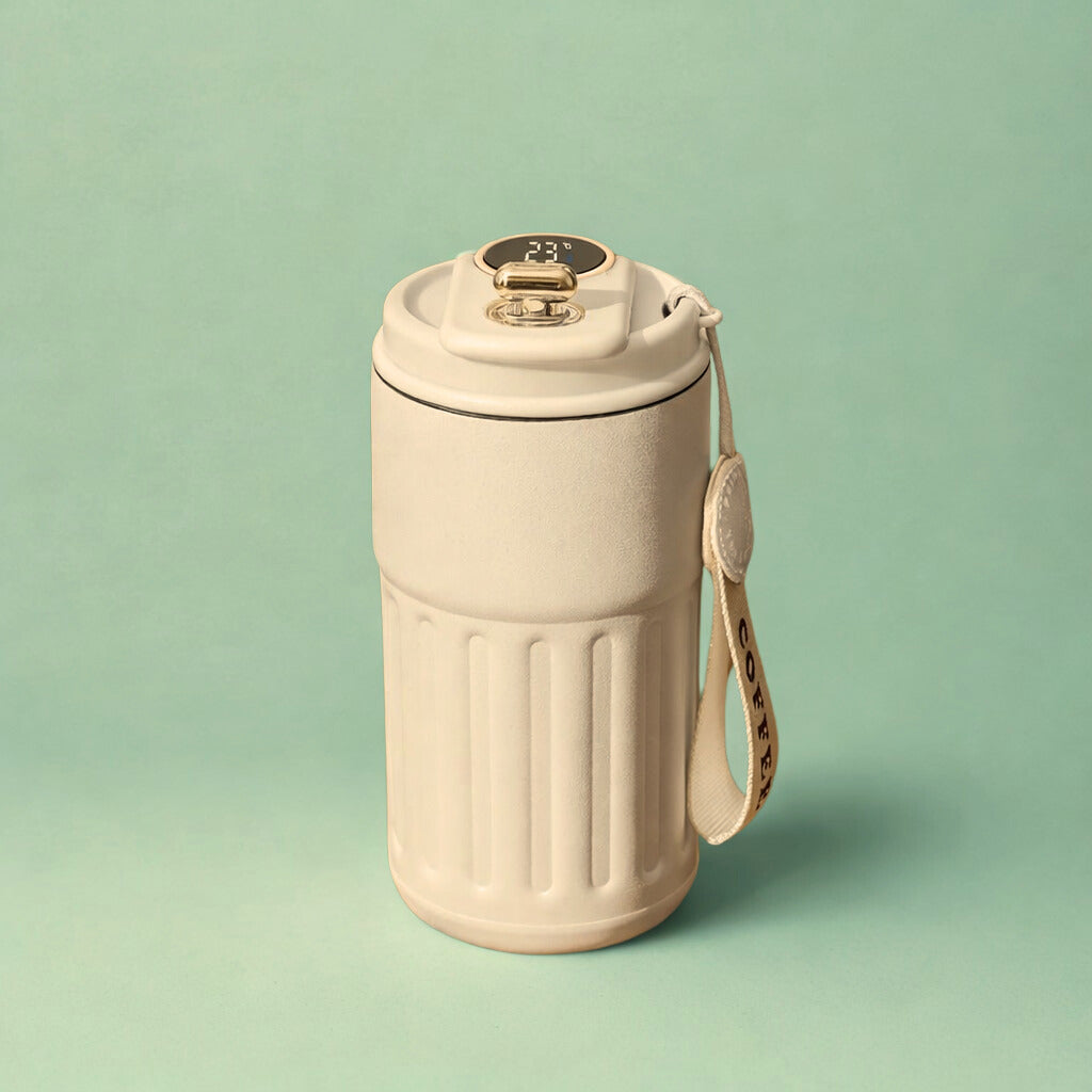 Disfruta tu bebida siempre a la temperatura perfecta con esta botella termo inteligente de 450–500 ml. Gracias a su pantalla LED táctil, podrás conocer al instante la temperatura de tu café, té o agua sin necesidad de abrirla. Fabricada con acero inoxidable de alta calidad y doble pared al vacío, mantiene el calor o el frío durante horas, ideal para la oficina, el gimnasio, viajes o el día a día.